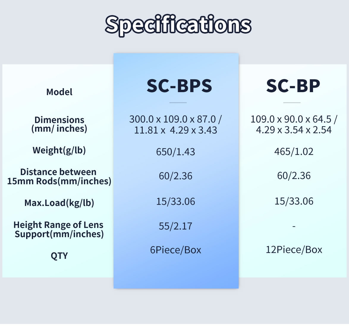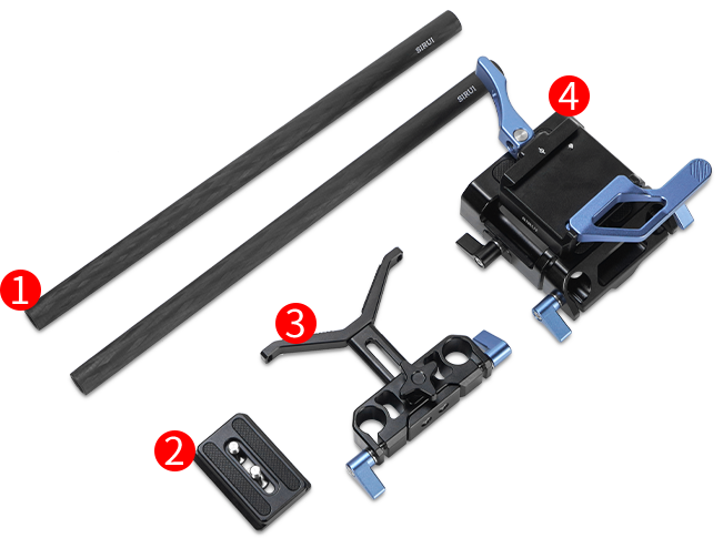 SIRUI SC-BPS Compatible Baseplate Set is combined with SIRUI SC-BP Compatible Baseplate and detachable 15mm carbon fiber rods as well as Y-shaped lens support.