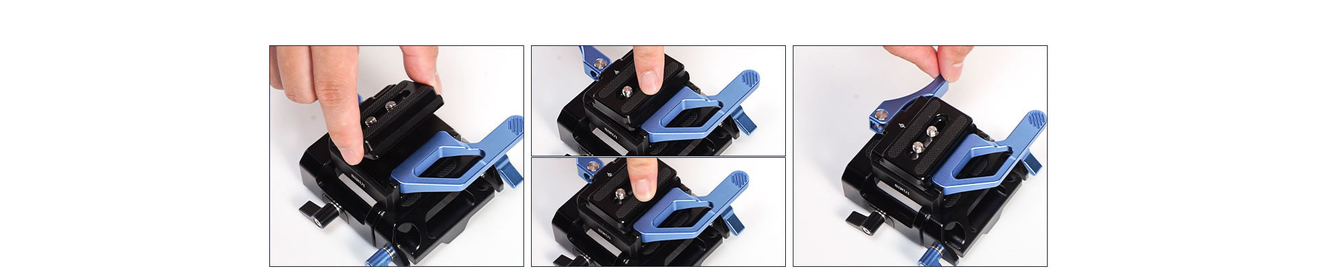 the plate to the clamp.2. Camera cage with Arca-swiss can be inserted to the clamp directly.