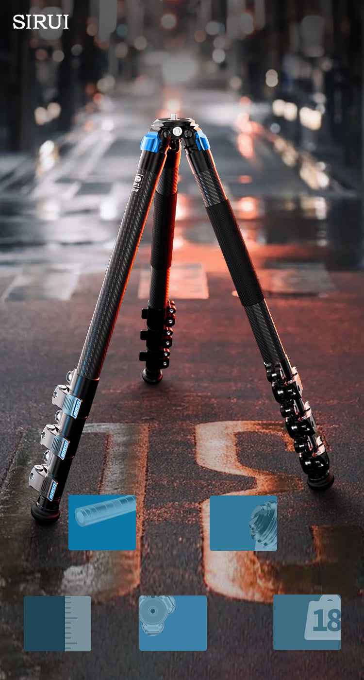 Constructed with 8-layer carbon fiber, this SIRUI L-324F Landscape Carbon Fiber Tripod with no center column is really lightweight and compact. The max tube diameter of this stable tripod is 32mm and the max load is 18kg, suitable for cityscape, outdoor shooting, macro shooting, etc.
