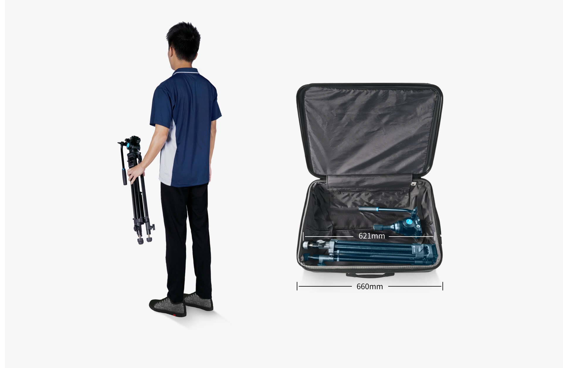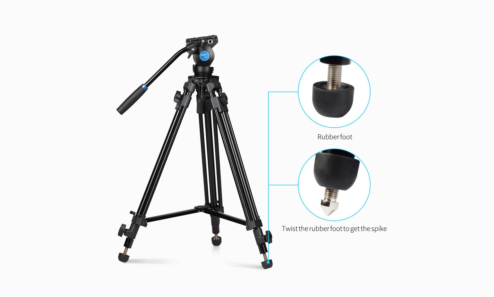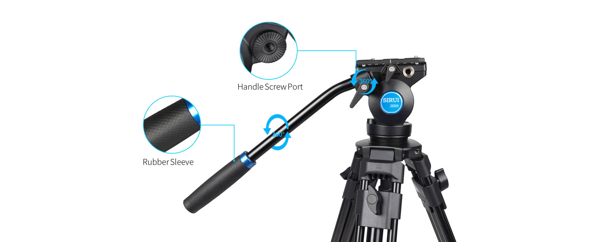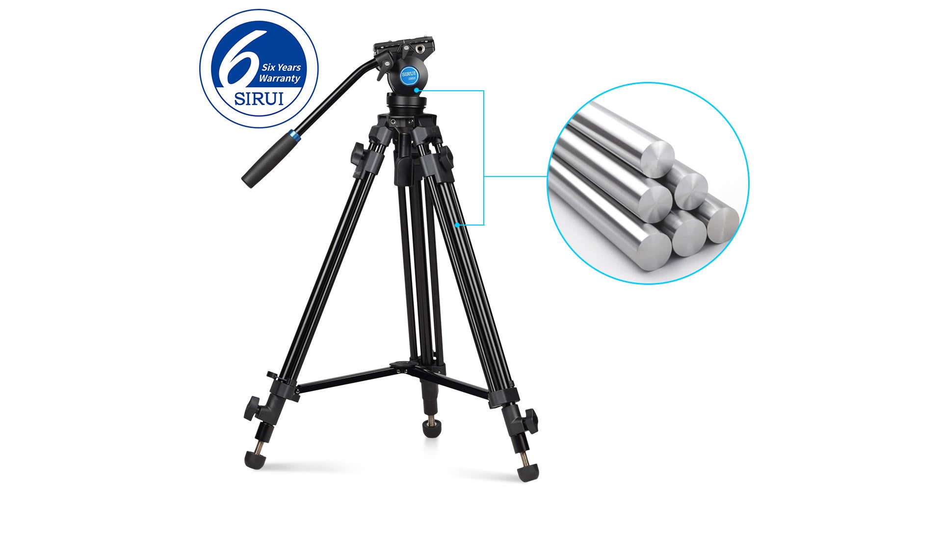 SIRUI video tripod does not sacrifice quality for lightness and portability.Both the tripod and the video head are made of high-strength aluminum alloy, which is of high strength and resistant to scratches and abrasion.