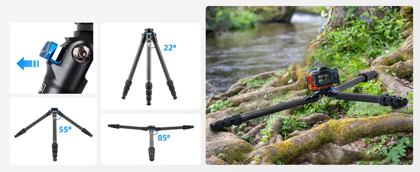 Carbon Legs | 4 Sections | ? 15 - 25.8 mm | 3 Sections | ? 16 - 22 mm | 5 Sections | ? 10 - 22 mm | 4 Sections | ? 18.6 - 29.4 mm | 4 Sections | ? 18.6 - 29.4 mm |