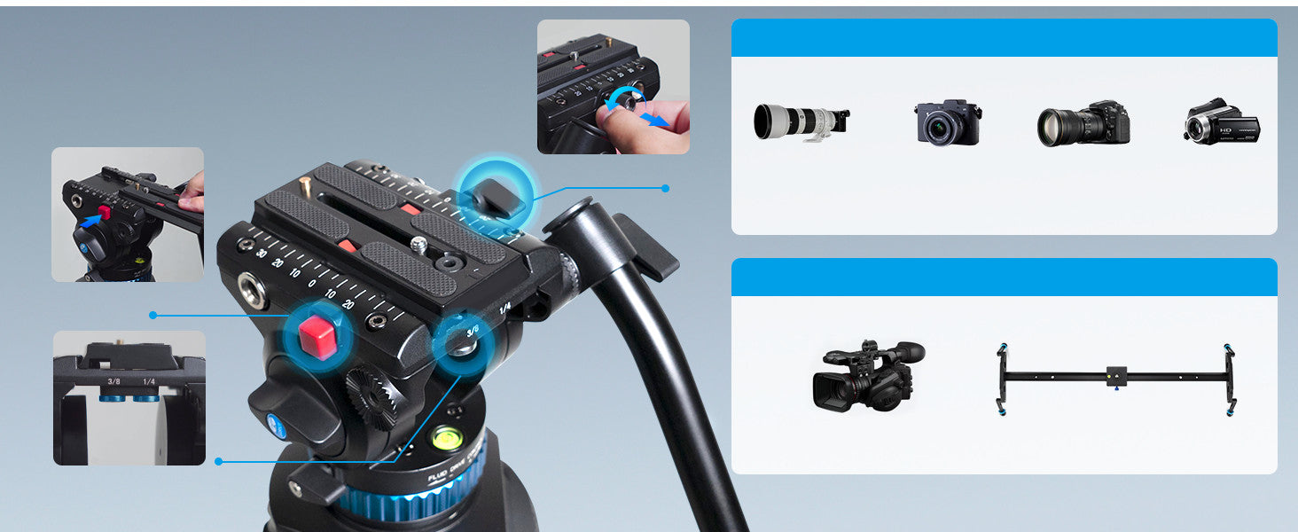 With 1/4" and 3/8" Screws for different photography gears