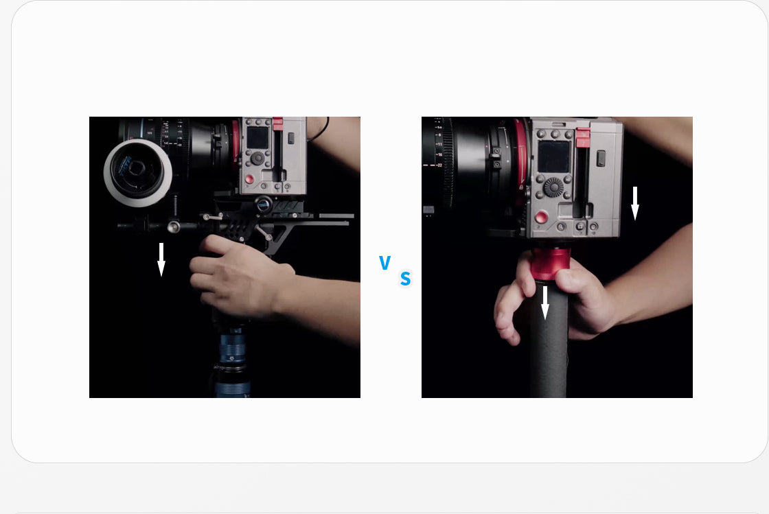 The quick release system allows for a simple and quick setup of the monopod, saving you a lot of time on set.