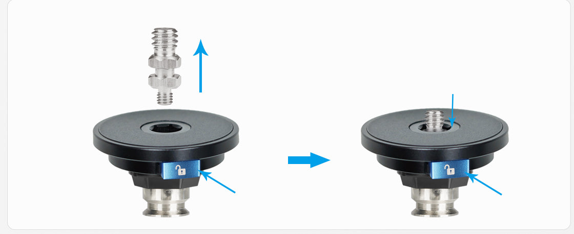 Flip the screw upside down to switch between the 1/4"and 3/8" thread.