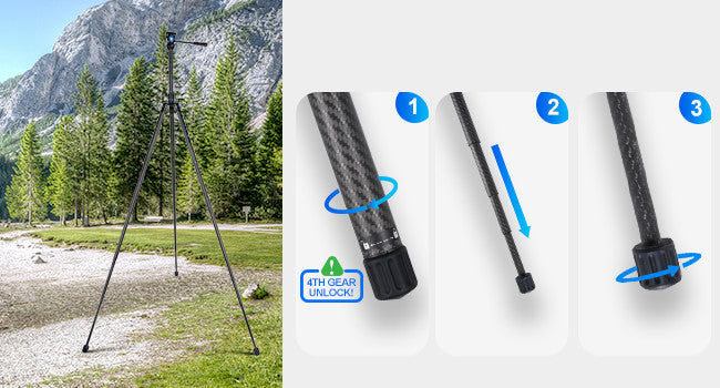 (Note: Please gently twist the lock to the 4th gear to fully extend the leg)