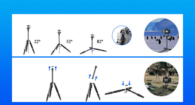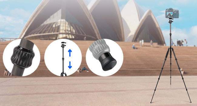 5-section carbon fiber legs with quick-release twist-locks allow you to adjust the working height from 3.54" to 51.97" in seconds.