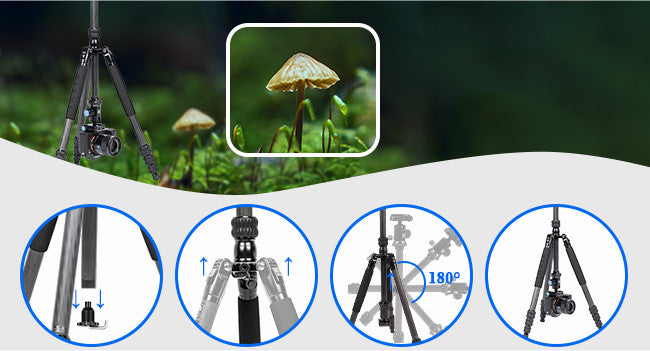 Extendable and reversible centre column allows you realize the low angle shooting, meet your diverse photography needs. And with the included stainless metal spikes, stand ?rm on a soft ground to shoot steadily.