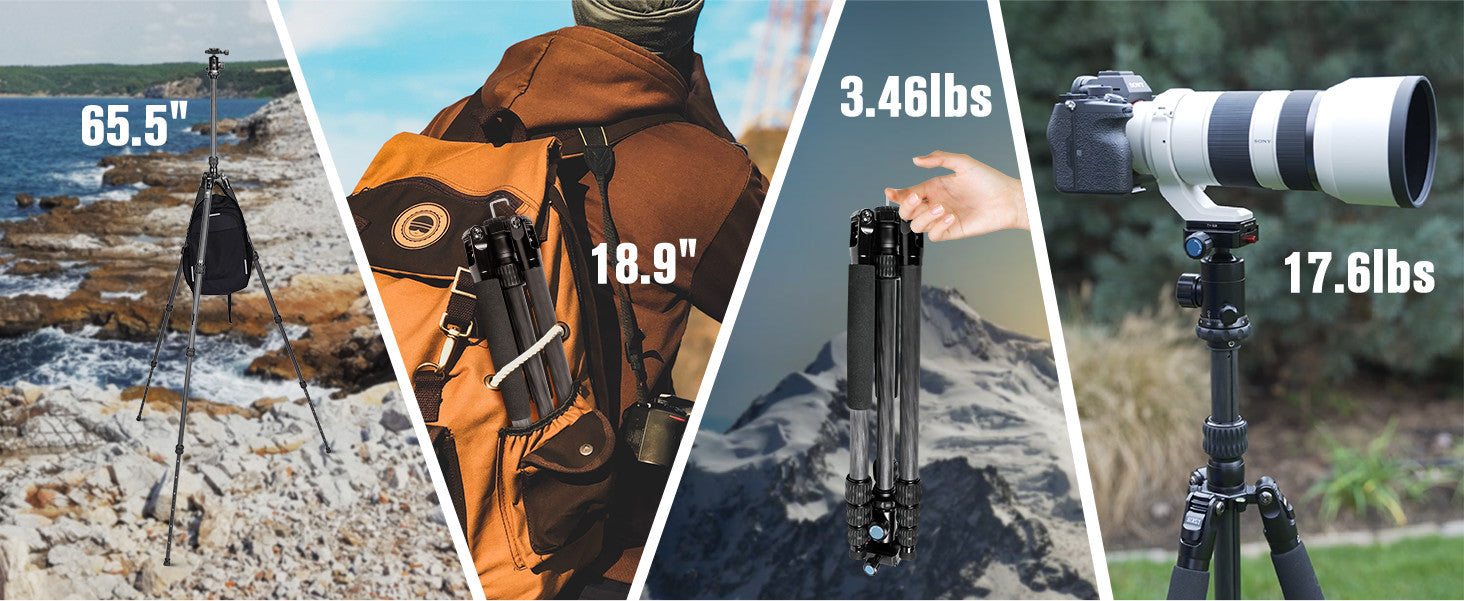 - 1*Carbon Fiber Travel Tripod with Ball Head